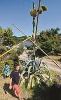 リュウゼツラン開花 安来 植えた故人しのぶ