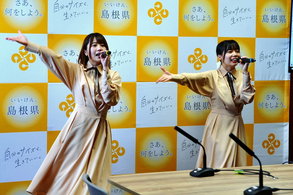 「♪きっと気付いていないだけで 誰かのヒーロー ここからはじまる」。9日、島根県庁の一室はライブ会場と化した。