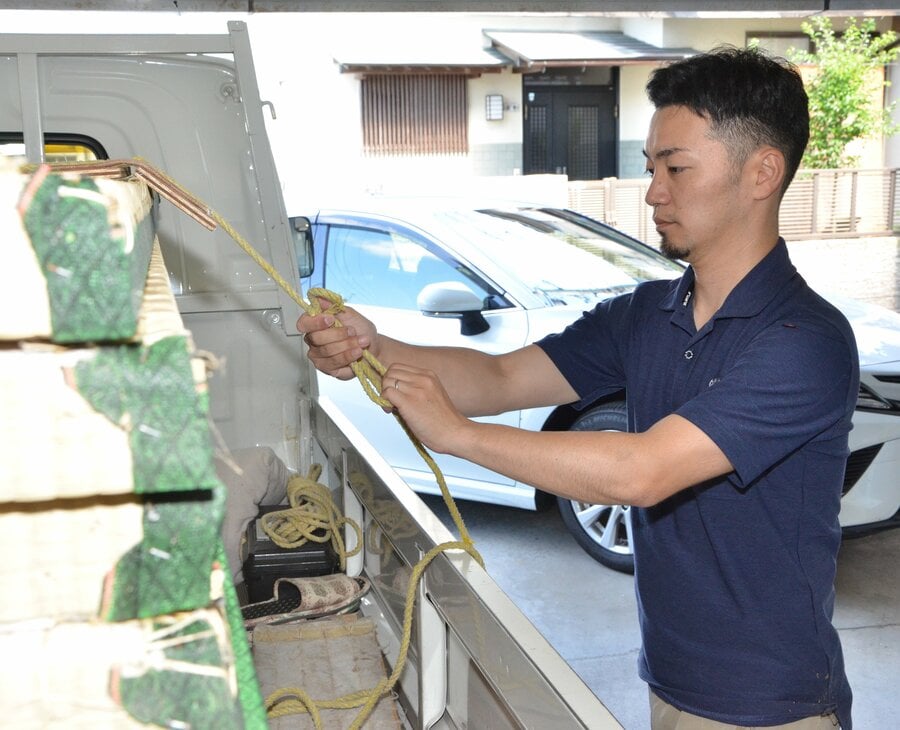 竹内さんによると動画の結び方は南京結び、トラック結びといった呼称があり、積み荷の大きさや形状によって5種類ほどの結び方を使い分ける。いずれの結び方も積み荷を固定するのには必須で「ちゃんと縛れば高速道路を走っても全く緩まない」(竹内さん)という。