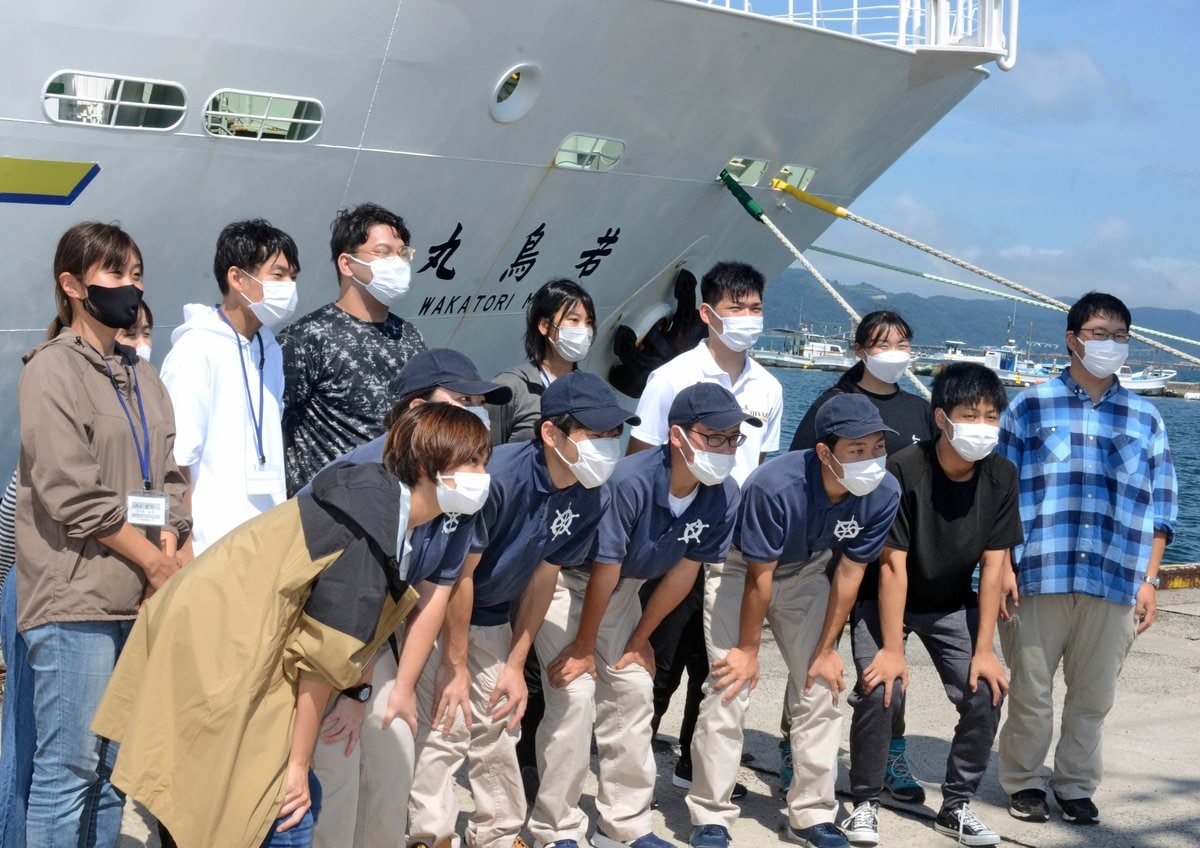参加するのは同大環境、経営両学部の1、2年生10人と同高海洋科の3年生4人。3日間洋上で過ごし、高校生は同大環境学部の太田太郎准教授(水産資源生物学)から実践的な海洋調査手法などを学び、大学生も高校生から船舶に関する専門知識に触れる。