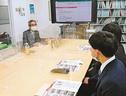 4月27日、松江市内であった島根県主催のウェブ合同企業説明会。松江テルサ(松江市朝日町)に設けた会場から8日間にわたり配信し、参加企業は前年より46社多い143社に上った。