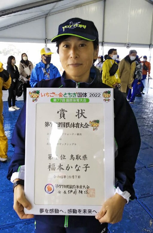 7日に栃木県塩谷町で行われた第77回国民体育大会「いちご一会とちぎ国体」のカヌー成年女子ワイルドウオーター・カヤックシングル1500メートル決勝で、鳥取の福本かな子(米子白鳳高教)が5分45秒79で初優勝を果たした。