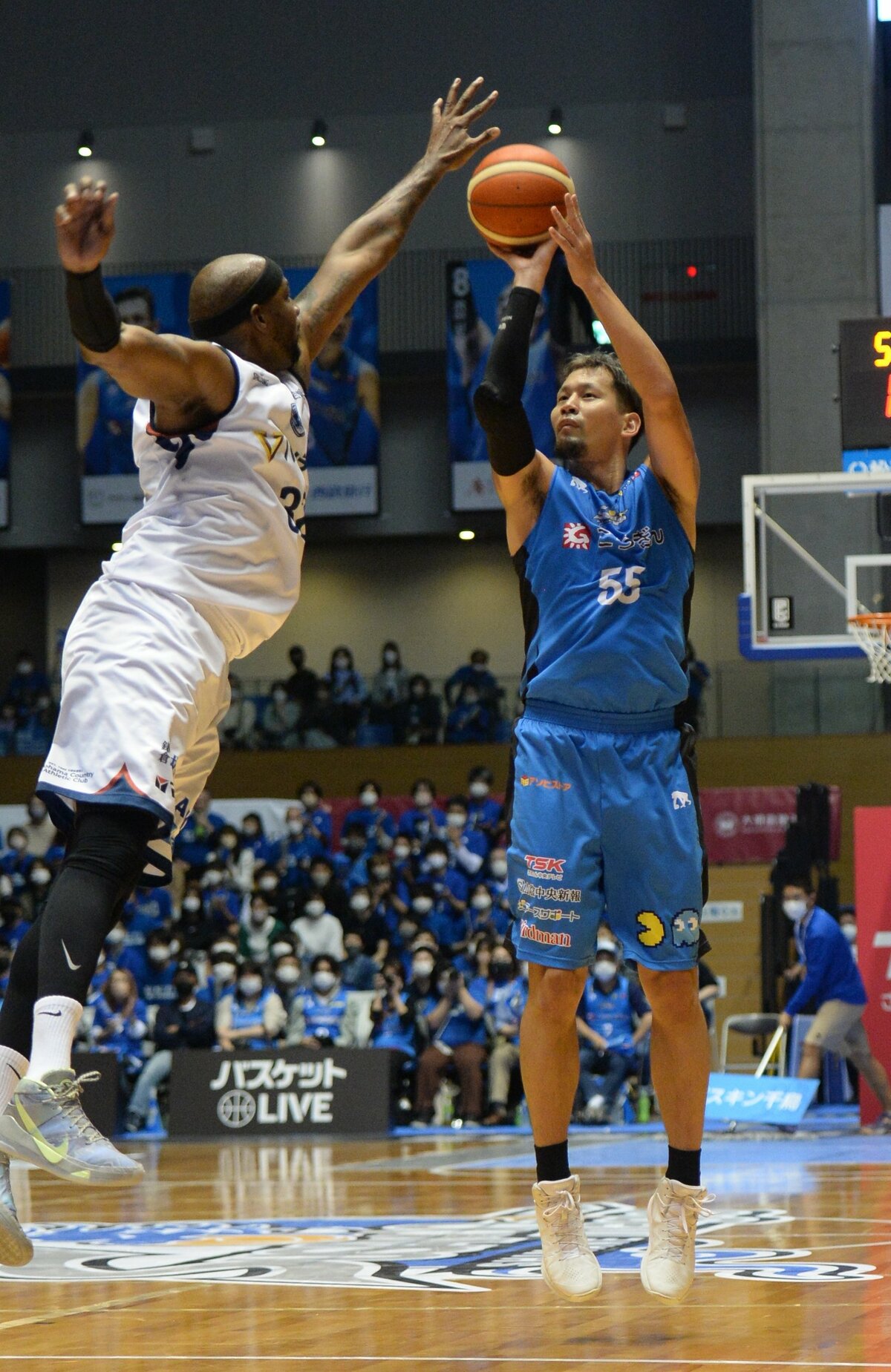 バスケットボール男子Bリーグ1部(B1)西地区の島根スサノオマジックが9日、松江市総合体育館で第4戦を行い、横浜ビー・コルセアーズ(中地区)に89ー75で勝利した。3連勝で通算成績を3勝1敗とし、西地区の順位は4位となった。ペリン・ビュフォード、安藤誓哉、ニック・ケイ、リード・トラビス、津山尚大の5選手が2桁得点をマーク。1点ビハインドで迎えた後半にリズムをつかみ、第3クオーターに逆転すると、津山の3点シュートなどでリードを広げた。熱戦の様子を写真で振り返る。