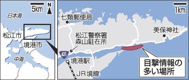ただ、魚を追いかけるため漁師にとっては頭が痛い。イルカは、境水道から島根半島沿いに回った松江市美保関町七類の岸辺でも目撃され、近くの七類定置網漁業によると、イルカを見つけた日は漁獲がほぼゼロになるという。