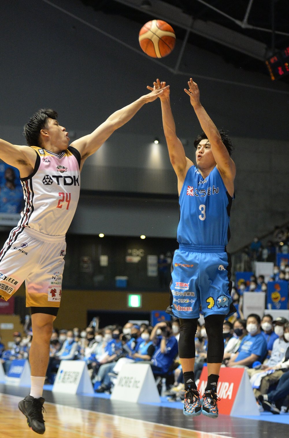 バスケットボール男子Bリーグ1部(B1)西地区4位の島根スサノオマジックが15日、ホームの松江市総合体育館で第5戦を行い、秋田ノーザンハピネッツ(東地区)を78ー63で下し、連勝を4に伸ばした。島根は41ー41で迎えた後半に秋田を突き放した。ペリン・ビュフォードが試合を通して両チーム最多の23得点、15リバウンドで「ダブルダブル」を達成。安藤誓哉、阿部諒もそれぞれ2桁得点をマークした。熱戦の様子を写真で振り返る。