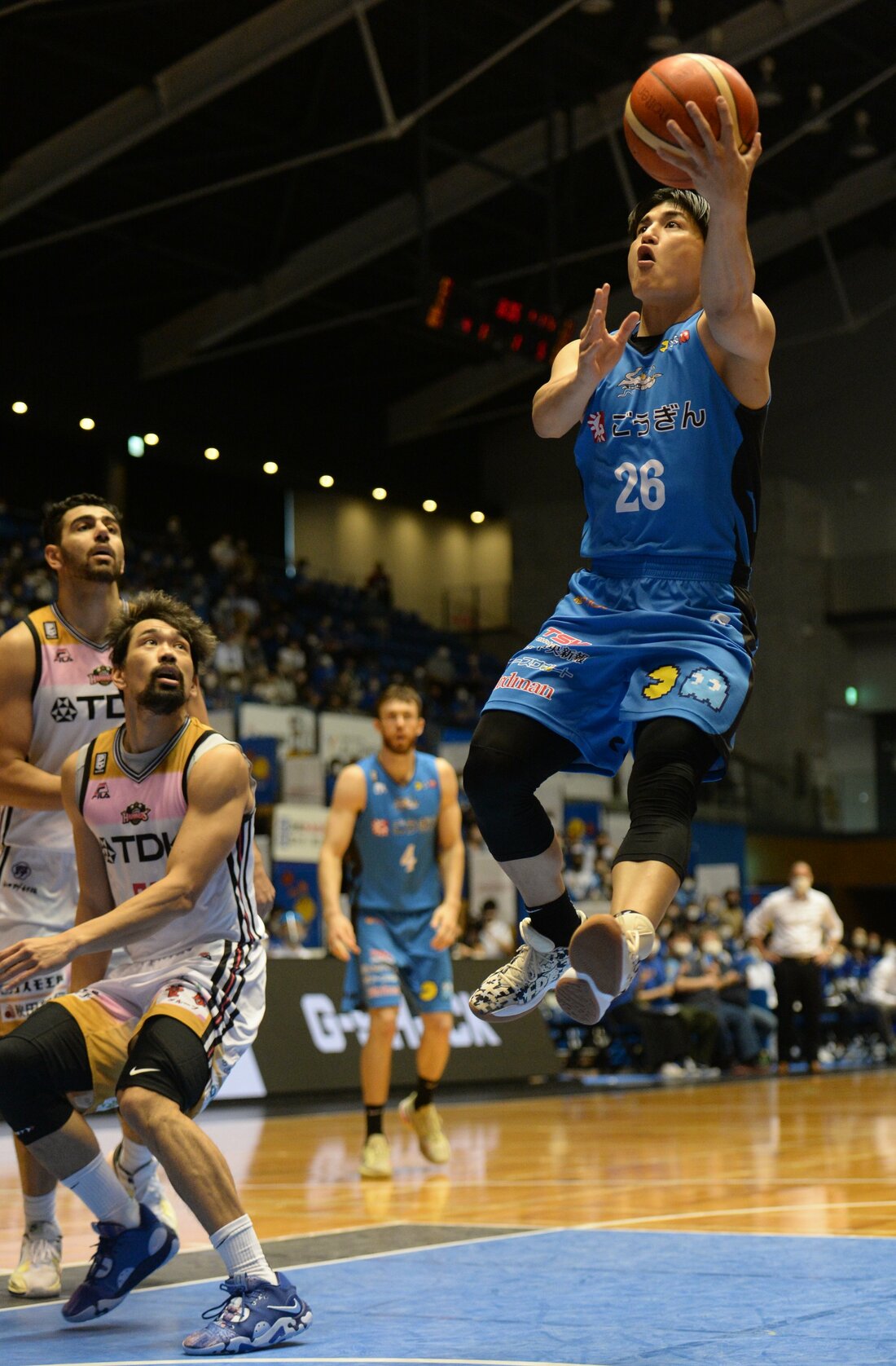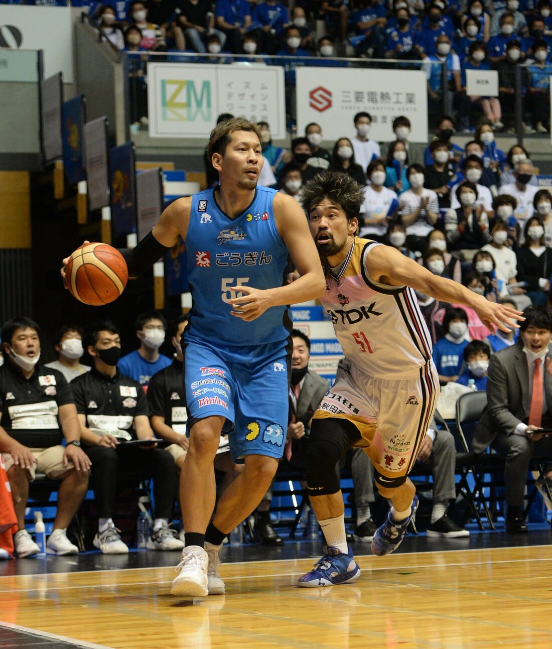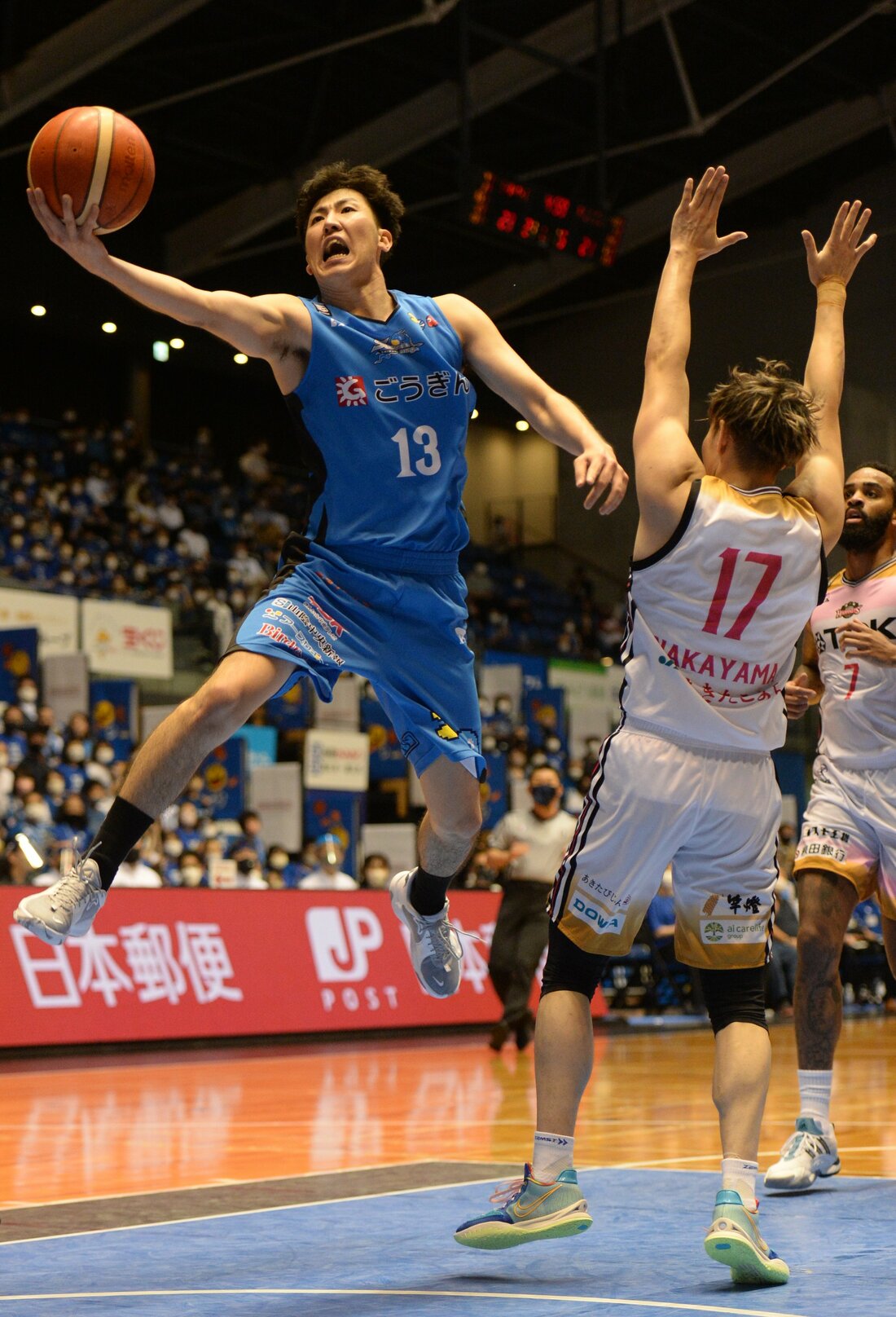 バスケットボール男子Bリーグ1部(B1)西地区4位の島根スサノオマジックが16日、松江市総合体育館で第6戦を行い、秋田ノーザンハピネッツ(東地区)に76ー70で競り勝った。両チームが譲らない展開の中、島根は第3クオーターに7連続得点で流れを引き寄せ、第4クオーターに同点とされるも、リード・トラビス、ペリン・ビュフォードの得点などで逃げ切った。ビュフォード、トラビス、ニック・ケイが2桁得点を挙げた。5連勝とし、通算成績は5勝1敗。両者譲らない熱戦の様子を写真で振り返る。