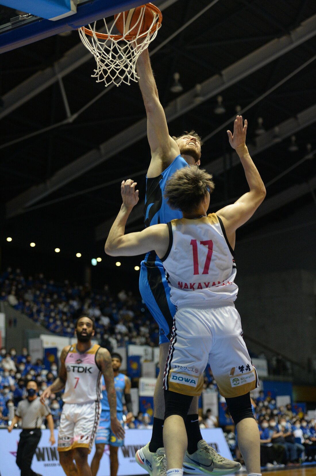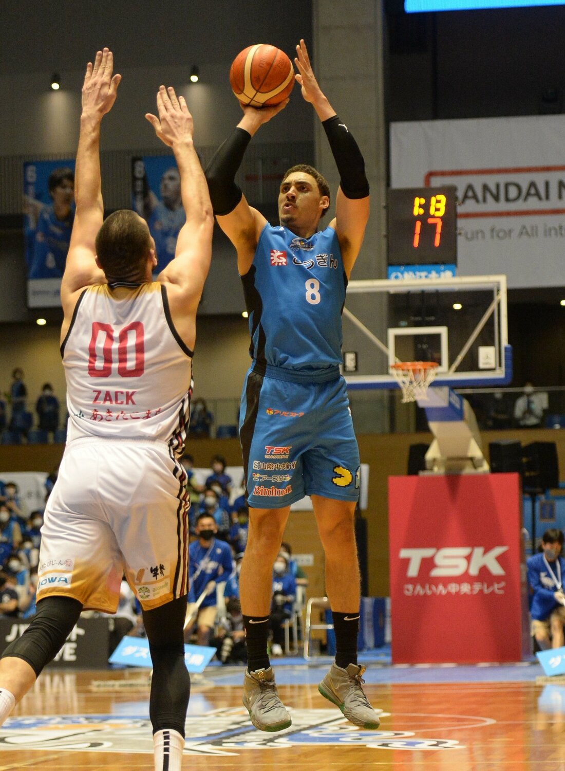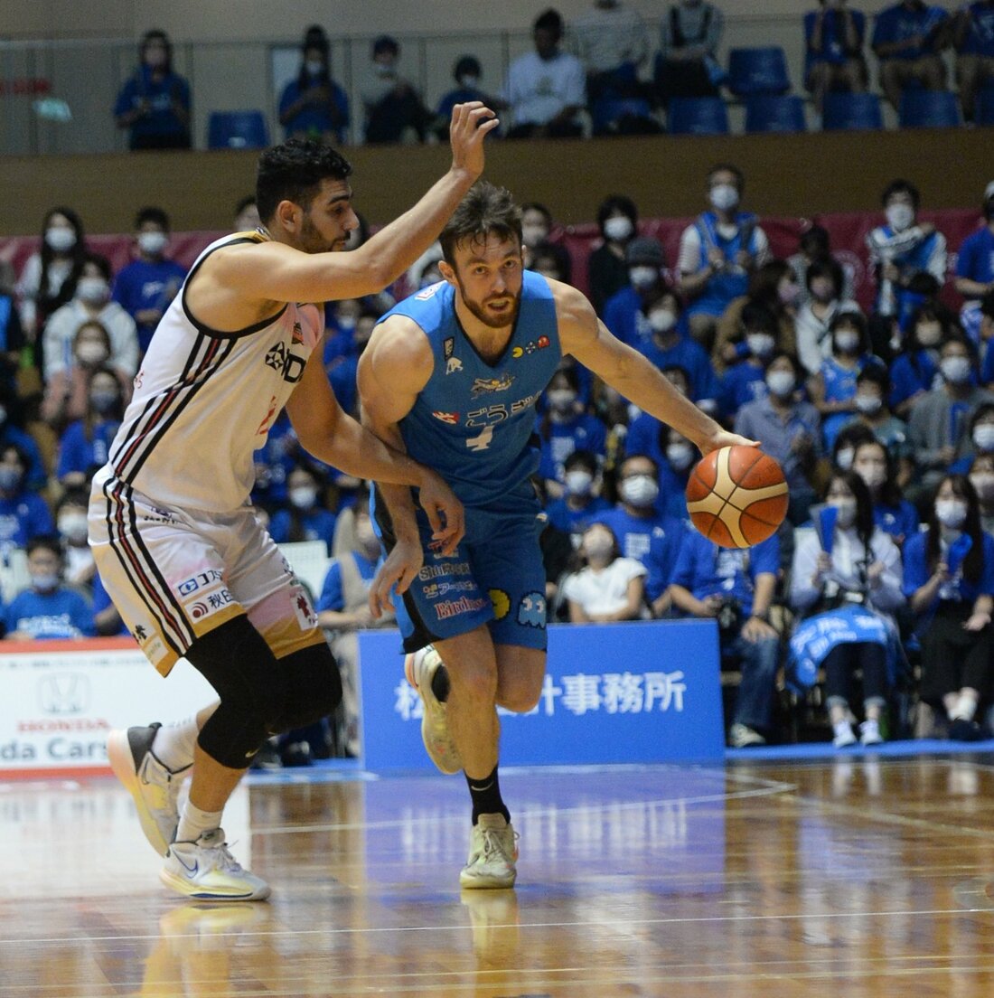 バスケットボール男子Bリーグ1部(B1)西地区4位の島根スサノオマジックが16日、松江市総合体育館で第6戦を行い、秋田ノーザンハピネッツ(東地区)に76ー70で競り勝った。両チームが譲らない展開の中、島根は第3クオーターに7連続得点で流れを引き寄せ、第4クオーターに同点とされるも、リード・トラビス、ペリン・ビュフォードの得点などで逃げ切った。ビュフォード、トラビス、ニック・ケイが2桁得点を挙げた。5連勝とし、通算成績は5勝1敗。両者譲らない熱戦の様子を写真で振り返る。