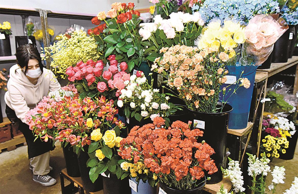 新型コロナウイルスの影響で冠婚葬祭やイベントが少なくなり、会場を彩る花の注文は減っている。同JAの共販で2020年度の生花販売額は4億5300万円となり、前年度比で1割落ち込んだ。