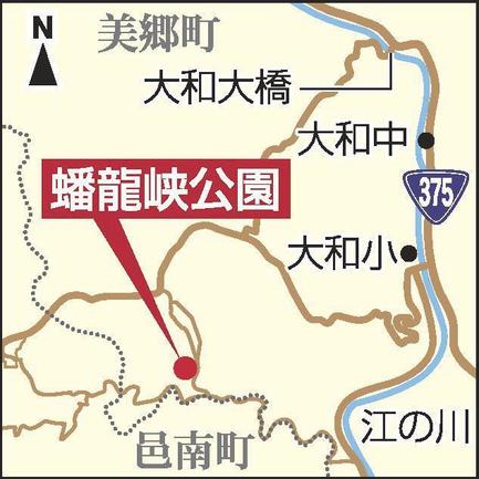 地域の史誌によると、ここは「魚切り」と呼ばれていた。1934年、住民有志が、蟠(ばん)龍峡の名称を付けた。邑智郡内有数の観光地として戦前は大いににぎわったという。