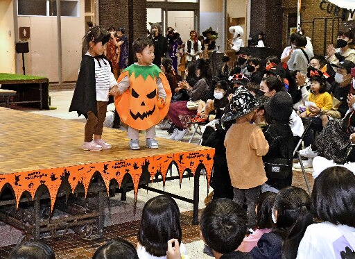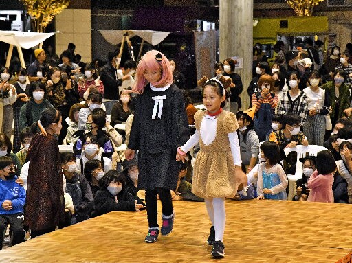 江津市では3年ぶりにハロウィーンイベントが開かれた。仮装ファッションショーや吹奏楽の演奏があり2千人が訪れた。アニメキャラクターや魔女に変装した19組44人が登場した。