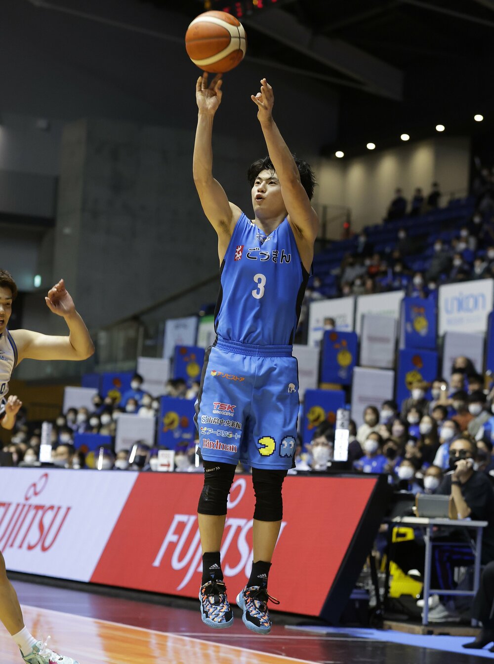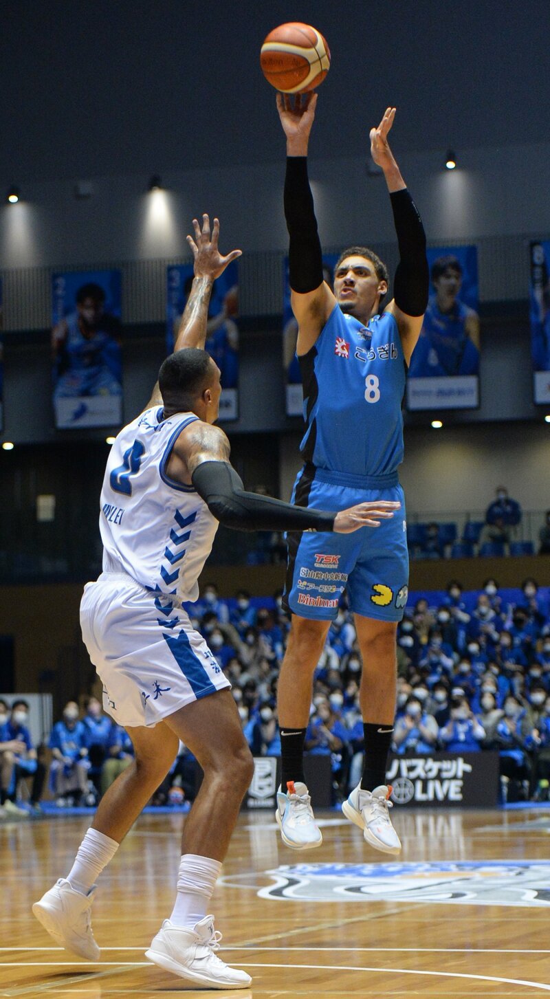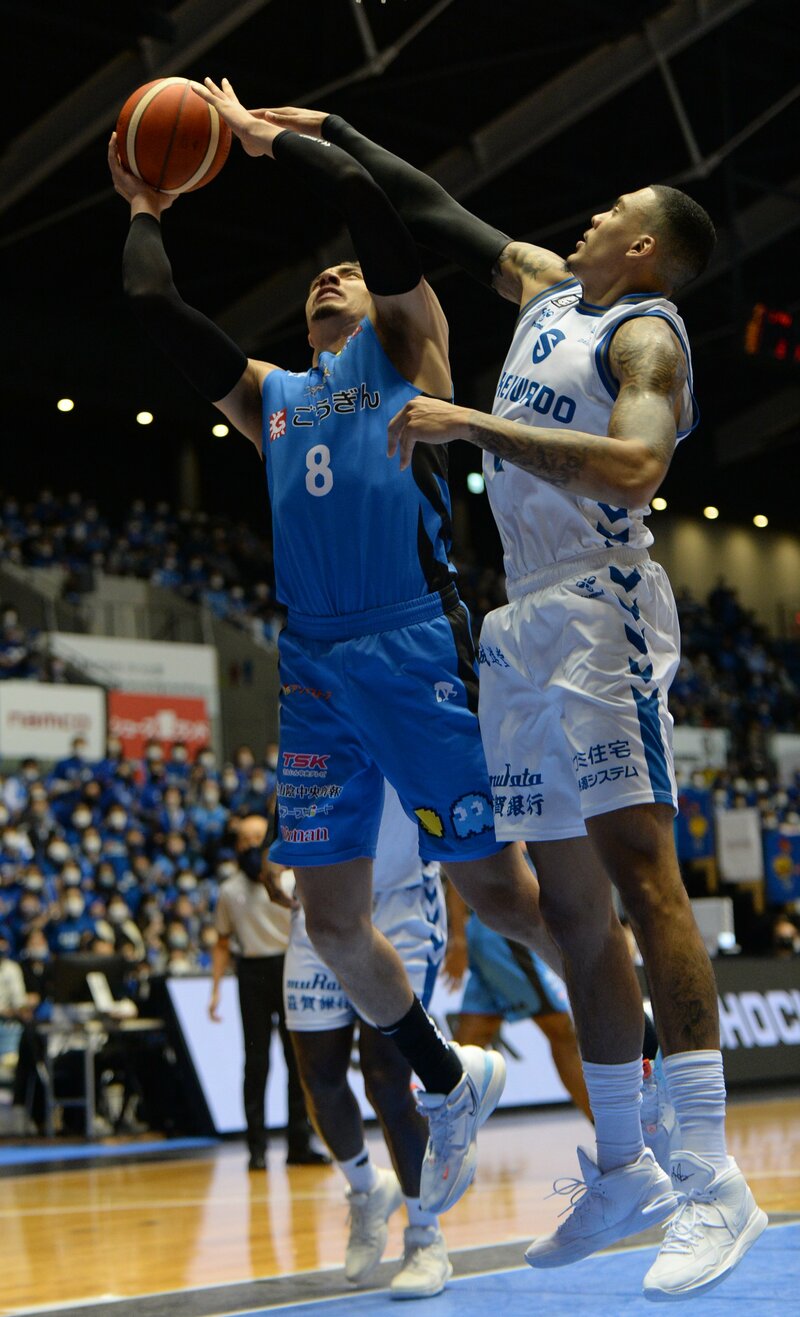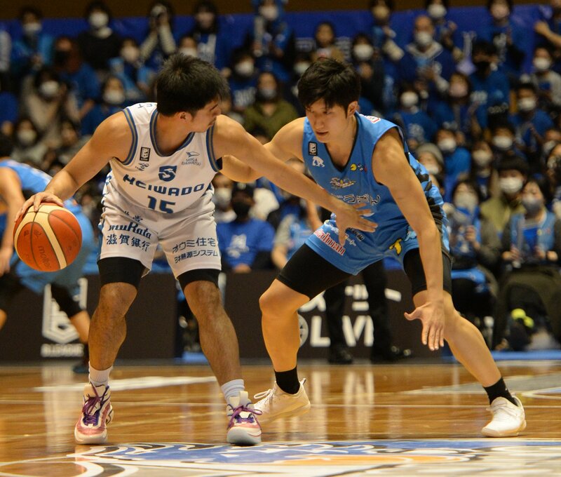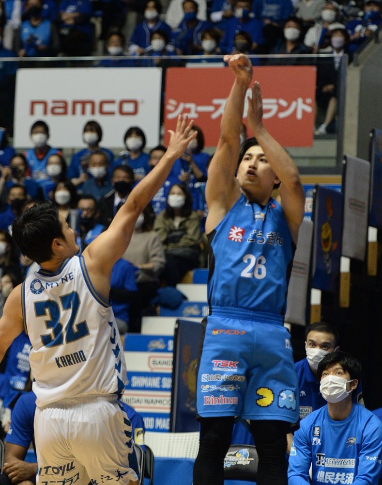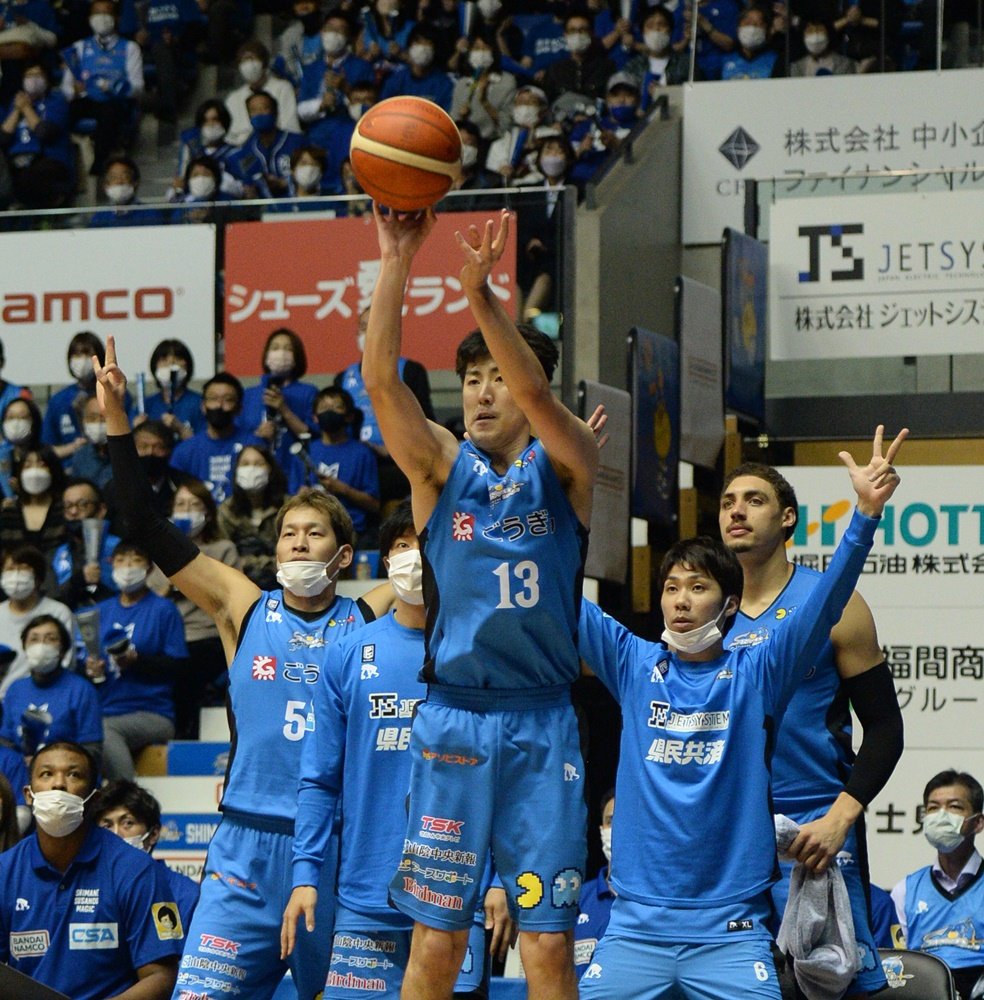 バスケットボール男子Bリーグ1部(B1)の島根スサノオマジックが26日、ホームの松江市総合体育館で第9戦を行い、滋賀レイクス(西地区)を87-63で下した。通算7勝2敗で西地区3位の好位置につけた。この日は、今季初めて登録メンバー全員(11人)が出場。「全員バスケ」で前半の劣勢をはね返して後半に逆転。体育館を埋めた約2400人が勝利に酔いしれ、オフィシャルチアパフォーマンスグループ「アクア☆マジック」も、ハロウィーンにちなんだ衣装とダンスで花を添えた。23枚の写真で振り返る。