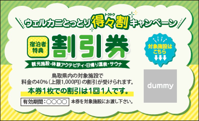 宿泊の際にもらえる「宿泊者特典割引券」。山陰両県在住者は券がなくても、本人確認書類や接種証明書を提示すれば独自補助が利用できる(鳥取県提供)