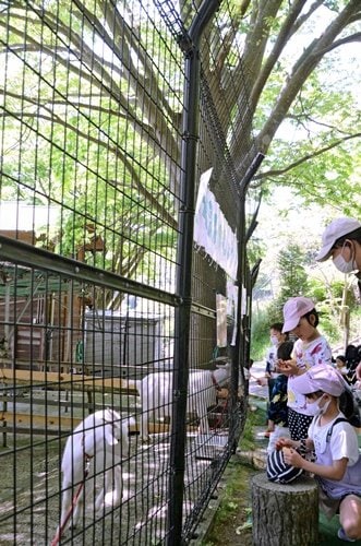 ゲージ越しに餌を与えられる動物もおり、園内で販売する餌のほか、にんじんやキャベツ、サツマイモなど持参した餌を与える子どもたちもよくいる。