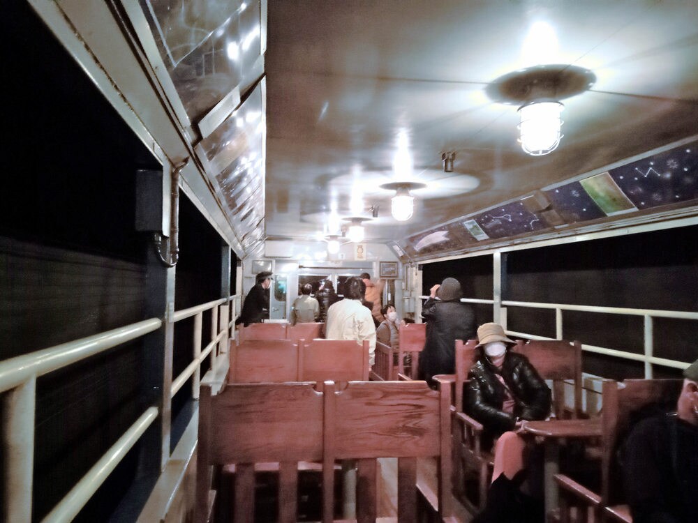 道中、窓のないトロッコ列車内は常に風が吹く。車体に何度も枝が当たり、たくさんの枯れ葉が舞い込んできた。ドライブで車の窓を全開にしても味わうことができない、周辺の自然との一体感。それがおろち号の魅力なのだとしみじみ思った。