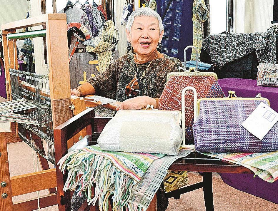 大隅さんは自分で考えたデザインを自由に表現できる魅力に引かれ、35年前にさをり織りを始めた。積極的な性格で、山口県や広島県で展示会を開き、活動してきた。