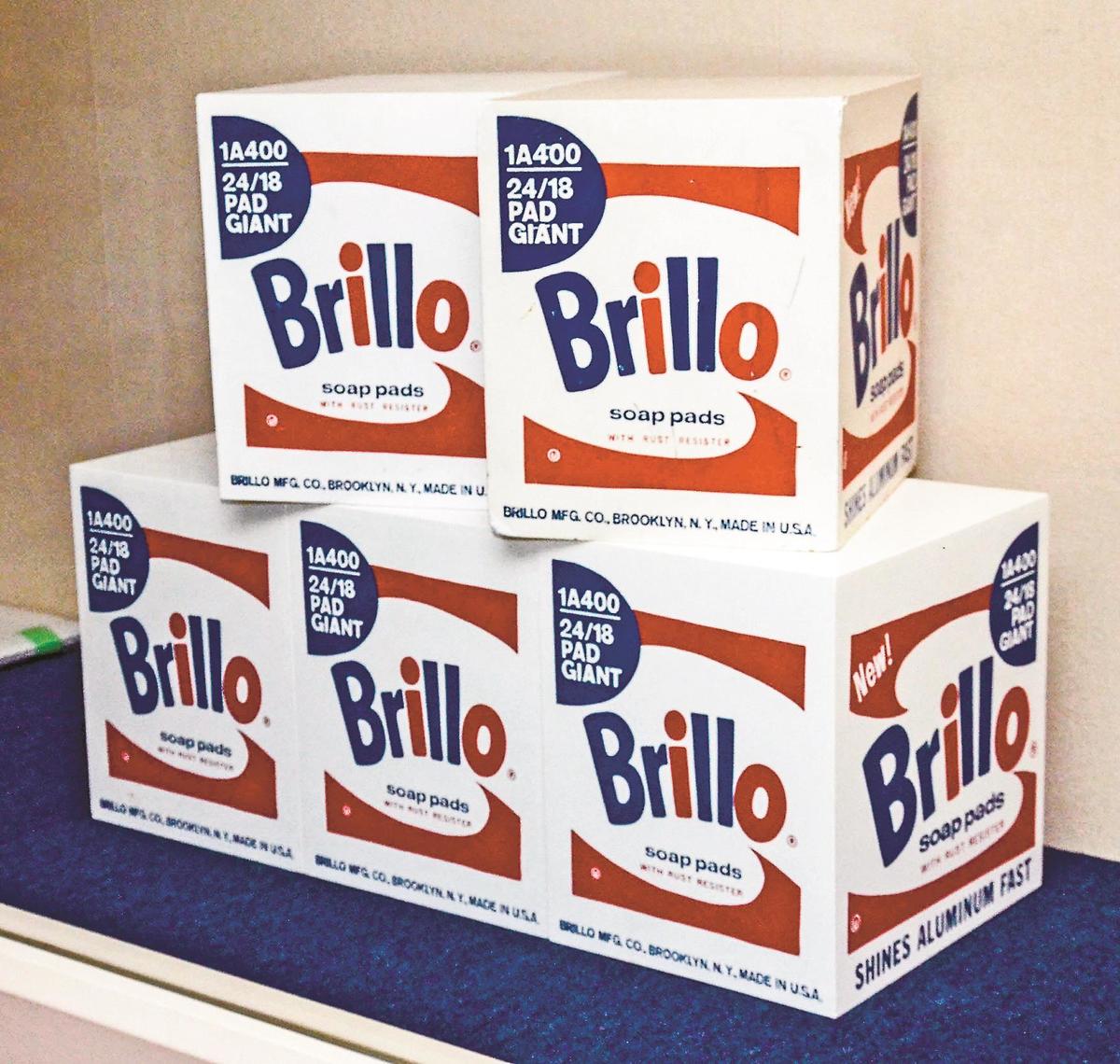 ブリロの箱は米国のたわしの包装箱を模倣した作品。大衆文化をモチーフとして、美術の価値観を変えたとされる。県は5点購入し、1点(6831万円)は1968年の制作。残る4点(各5578万円)はウォーホルの死後の90年に回顧展のために作られた。