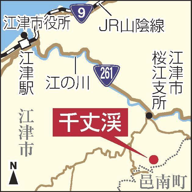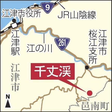 江津市桜江町江尾と島根県邑南町日和にまたがる国の名勝「千丈渓(せんじょうけい)」。2013年の豪雨で被災した遊歩道の復旧工事が進み、滝や淵、大岩が点在する自然美を満喫しながら、ゆっくりと散策できる。