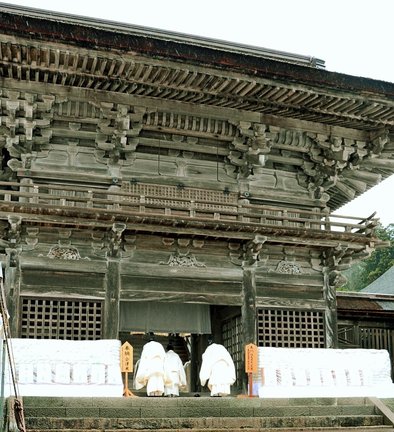 千家尊祐宮司が斎主を務め、米や酒、魚、野菜など海、山、川の幸を供膳(きょうぜん)に載せて神前に供える「献饌(けんせん)の儀」が執り行われた後、祝詞が奏上された。楼門付近で巫女(みこ)神楽の奉納があり、参列者が玉串をささげた。