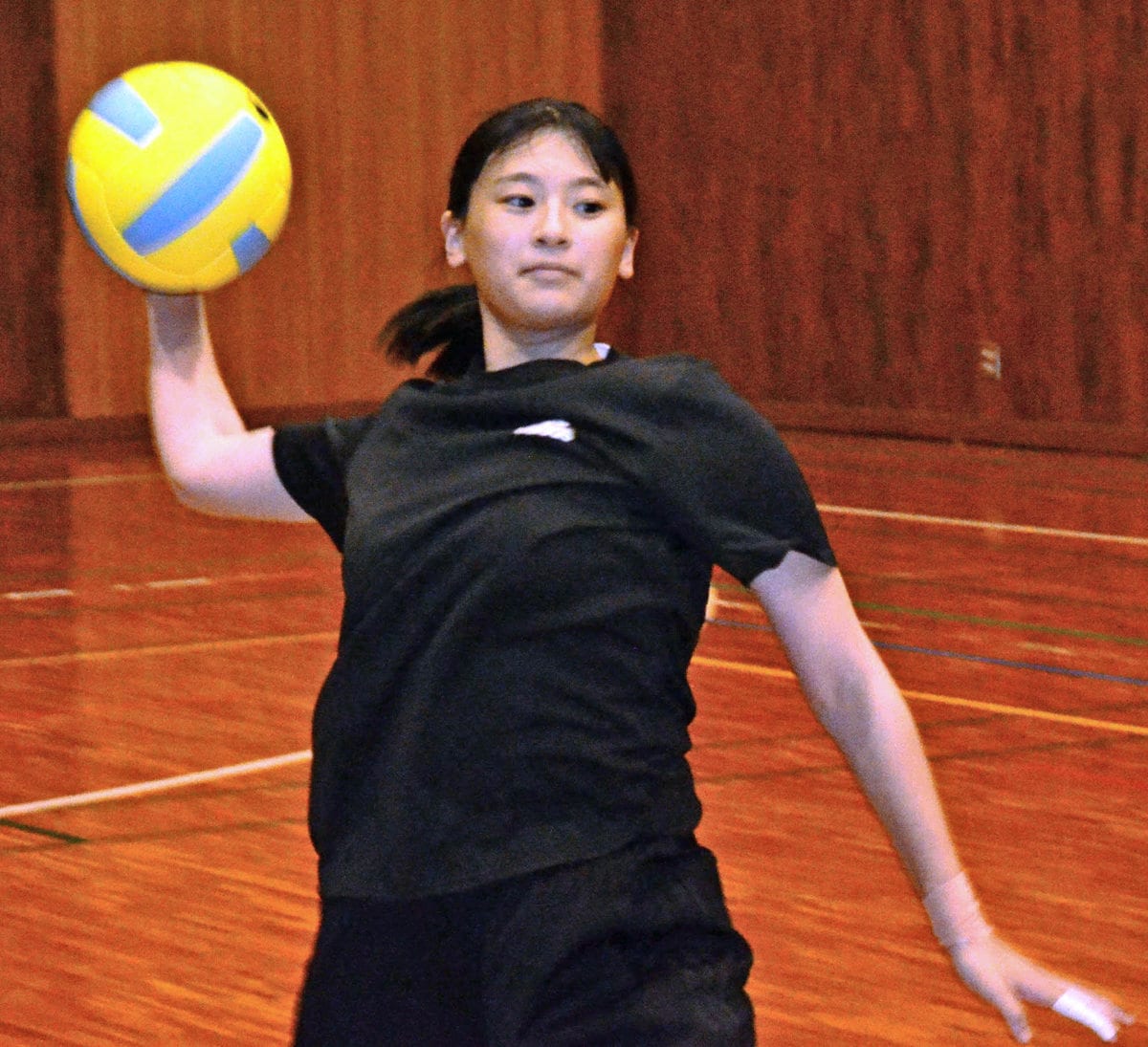 福田さんは小学1年から競技を始め、現在は鳥取県内唯一のシニアチームに所属。監督を務める父の徹さん(42)は「ボールを取ったり、よけたりする守備力がある」と評価する。