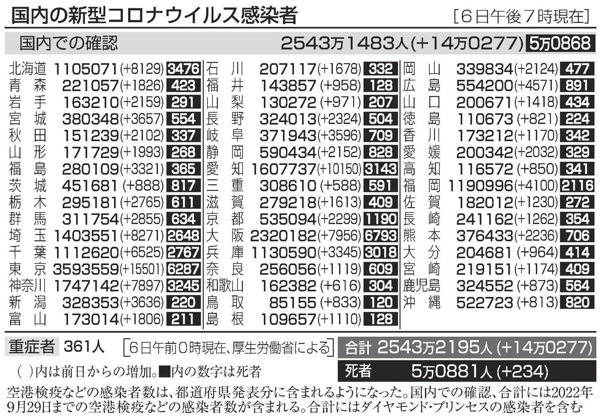 県内の累計感染者数は島根10万9657人、鳥取8万5155人。病床使用率は島根(即応病床とコロナ患者が入院する一般病床の合計368床)49・7%、鳥取(確保病床351床)44・2%。宿泊療養は島根12人、鳥取17人。重症者は島根1人、鳥取はいない。