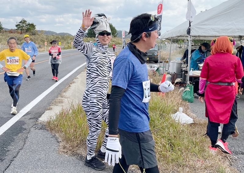 仮装したランナーも意気込みを語った「第6エイド中継カメラ」の動画はこちらで