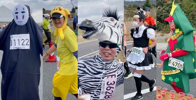 沿道から「おもしろい」「かわいい」と声援を受けた仮装ランナーを紹介する。