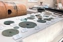 天守の軒下で長さ3~5メートルの「すす梵天(ぼんてん)」を使って壁に傷が付かないよう、やさしくはたいた。天守内では布巾で床や柱などを丹念に磨いた。