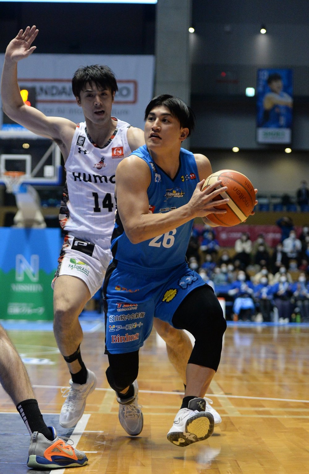 バスケットボール男子Bリーグ1部(B1)西地区の島根スサノオマジックが14日、ホームの松江市総合体育館で大阪エヴェッサ(西地区)との第19戦を行い、千葉戦の勝利の勢いそのままに快勝した。試合を迫力の写真で振り返る。試合結果はこちらから。