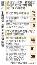 治療については、健常だった時から約5時間以内の発症なら、注射で血栓を溶かす療法やカテーテルで血栓を回収する治療ができることを紹介。県立中央病院では脳神経外科、神経内科の医師がチームで緊急治療に当たる体制を取り「後遺症を軽くするには早期発見、早期治療が大事。『明日でいいや』は命取りになる」と、軽く考えずに救急受診することを勧めた。