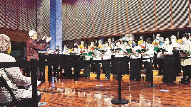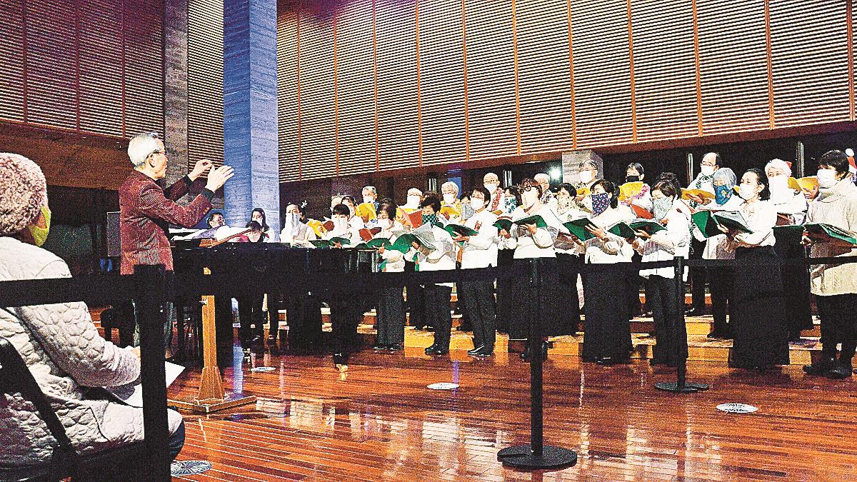 新型コロナウイルス禍の影響で歌声を披露する機会が限られる中、合唱団の島田憲郷団長(76)は「歌う側の楽しむ気持ちが伝わるよう気持ちを込めて歌った」と話した。 (藤本ちあき)
