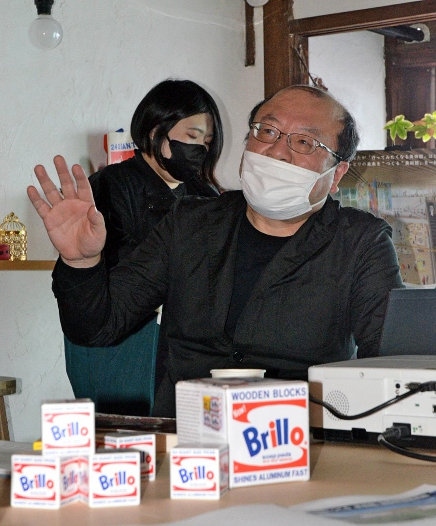 2025年春に開館する鳥取県立美術館(倉吉市駄経寺町2丁目)の目玉として県が計約3億円で購入した、巨匠アンディ・ウォーホル(1928~87年)の立体作品「ブリロの箱」について、専門家による対話型の説明会が29日、米子市内であった。県美術館整備局美術振興監の尾崎信一郎さん(60)を講師に迎え、参加者は作品の時代背景や意義を考えた。