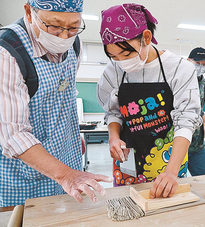 細く切るのがうまくいかず斜めになったり、切れていないところができたのもご愛嬌(あいきょう)。そば打ちは初めてという安来高校2年の謝花陽菜さん(17)は「混ぜるのが大変だった。優しく教えてもらい、上手にできて良かった」と話した。