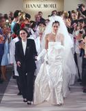 さらに日本を飛び出したことで自分のアイデンティティーや日本らしさを掘り下げ、制作に反映しているという。実際に、浮世絵や鶴といった日本人になじみ深いモチーフが見られる。森さんが引退する04年春夏のコレクションのイブニングドレスにはまるでふすま絵のような虎と竹が描かれ、スパンコールやビーズできらりと光らせる。