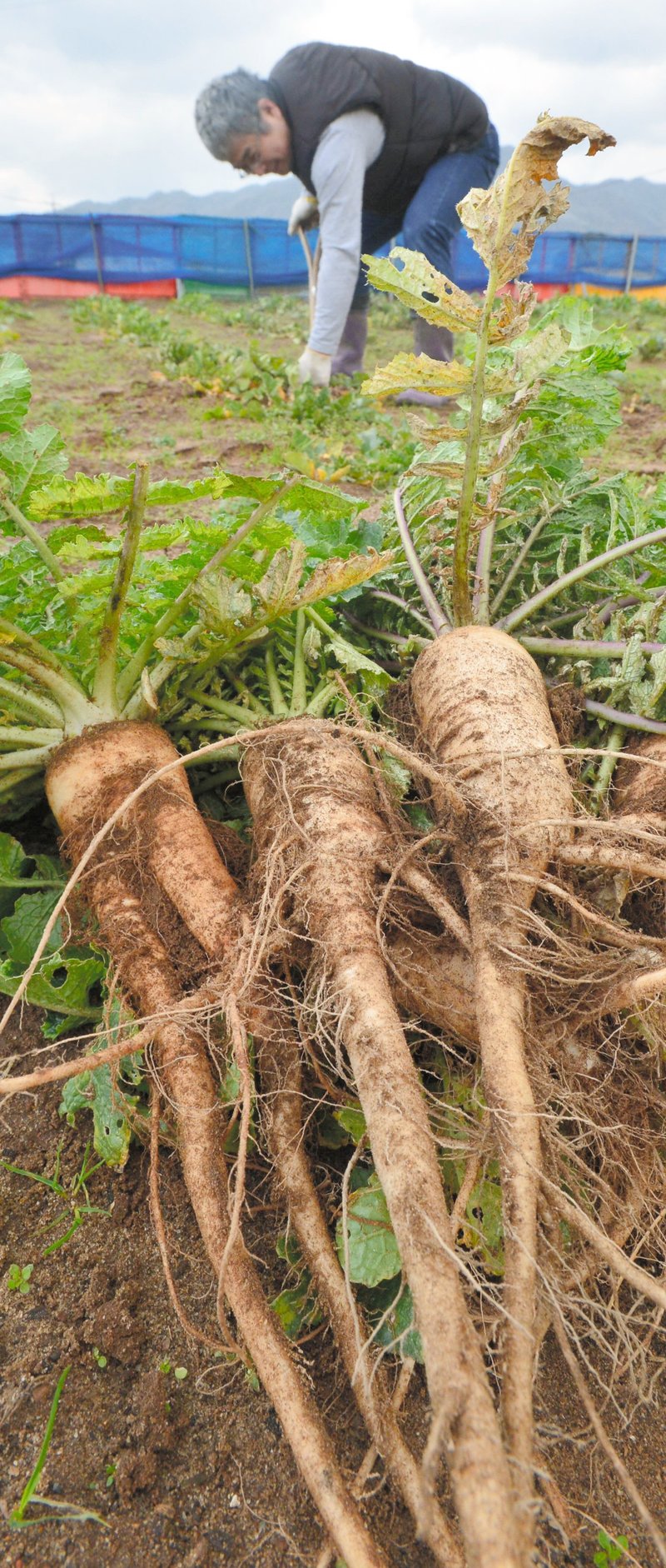 【写真】さまざまな仰天大根 山陰 2023/1/8 00:30 保存 さまざまな形の大根を写真で紹介する 「世界一桜島大根コンテスト」の重量部門で優勝した大根(2022年1月) 大阪駅前に「ど根性大根」(2020年11月) 大阪駅前の「ど根性大根」 三つ編み大根(提供)(2020年2月) 出雲おろち大根(2015年) ... 残り8文字(全文:120文字) 続きを読むには会員登録が必要です 無料会員に登録する ログインする 保存 記事を保存する この機能は有料会員限定です。保存した記事やフォローした特集をマイページでご覧いただけます。 有料会員になる ログイン 関連記事 内視鏡技術を高める機器「ミコト」 海外の技術普及に貢献 鳥取大初のベンチャーが開発 2025/12/2 18:15 島根、鳥取の降雪予報 島根3~15センチ、鳥取7~30センチ 3、4日 2025/12/2 17:40 出雲の弥生人は何を食べていた? 土器に染み込んだ脂質を分析 出雲で企画展 2025/12/2 16:50 浜崎未来は93位発進 女子ゴルフ、来季ツアー出場権懸かるQT 2025/12/2 16:45 【みんなの子育て24時間】自営業をしながら2児を育てる 白銀さんの「家事・育児ハック」 2025/12/2 12:00 特集・連載 目分量で打つ覚醒剤 「被害妄想」起こしパニックに 薬物依存症だった男性(3)〈顔なき…声〉 2025/9/4 18:00 覚醒剤を打つと、ロック歌手の幻聴が… 初めてのクスリは14歳 薬物依存症だった男性(1)〈顔なき…声〉 2025/9/2 18:00 客前で切り替わる「スイッチ」 テーマに合わせ「演じる」 コンカフェ店員の女子大生(中)〈顔なき…声〉 2025/8/13 05:00 健康経営に助言 益田 2025/5/22 04:00 介護サービス 多様性維持 ㈱ラッシュ 代表取締役 白根 侑哉氏 地元で育つミライのチカラ 島根県立江津工業高校 お子さんがより学べる家庭環境とは? 小中学生の保護者必聴セミナーを11月15日(土)に開催 島根スサノオマジック 「選手のサイン入りTシャツ」プレゼント