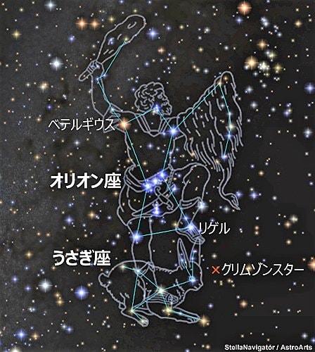 うさぎ座の見どころを挙(あ)げると、うさぎの頭の前に「クリムゾンスター」と呼(よ)ばれる星があります。その色はベテルギウスよりももっと深い赤で、うさぎの目の色に例えられることもあります。