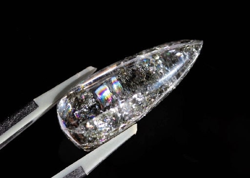 広沢さんが出会った印象深い鉱石の一つはブラジルの結晶石「蝕像(しょくぞう)アクアマリン」。熱水や圧力などの環境の変化で表面がへこみ、結晶の中に気体や液体など不純物が入ったインクルージョンと呼ばれる。角度によって雪景色のような神秘的な表情を見せるのが特徴だ。