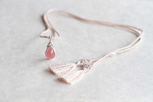 鉱石に出会ったのはネパールの道端にあった宝石店だった。鉱石を糸で編んで作るマクラメ編みの美しさに一目ぼれ。ものづくりをしたことがなく不器用だという瑛介さんだったが、自分で何かを作り出したいという思いから挑戦を決意した。細かい作業に苦戦するも現地の人に教わりながら、朝から晩まで毎日石に向かい続けた。