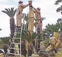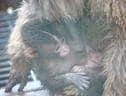 今季一番の寒波の到来によって山陰両県で大雪となった25日、米子市西町の湊山公園にあるニホンザル飼育施設「猿が島」では、サルが身を寄せて温め合う「サル団子」の光景が見られた。