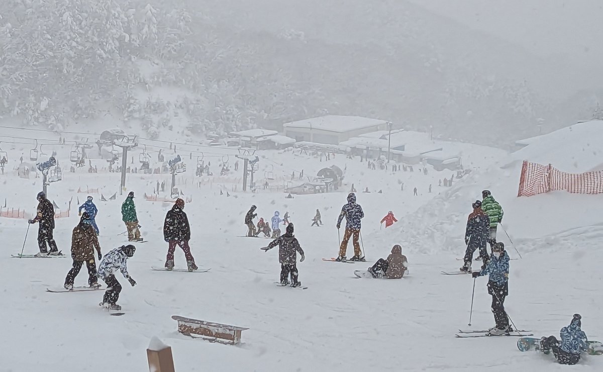 西日本最大級のだいせんホワイトリゾート(鳥取県大山町大山)は両日で6千人超が訪れた。今シーズン初めて4エリア9コースを全てオープンさせた。29日の積雪量は175センチで、尾関雅大営業課長は「ハイシーズンの真っただ中にいい雪が降ってくれた。よりたくさんの方に遊んでもらえる」と期待した。