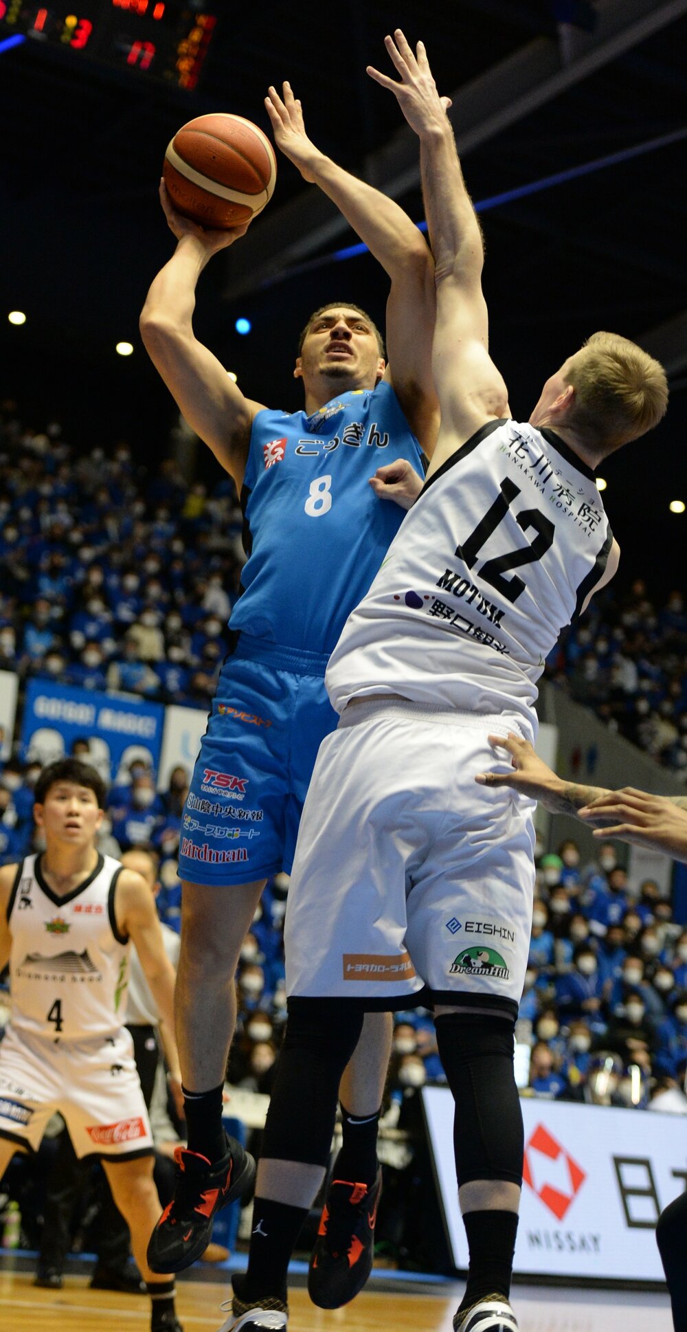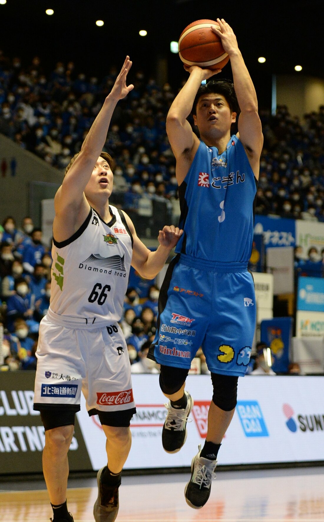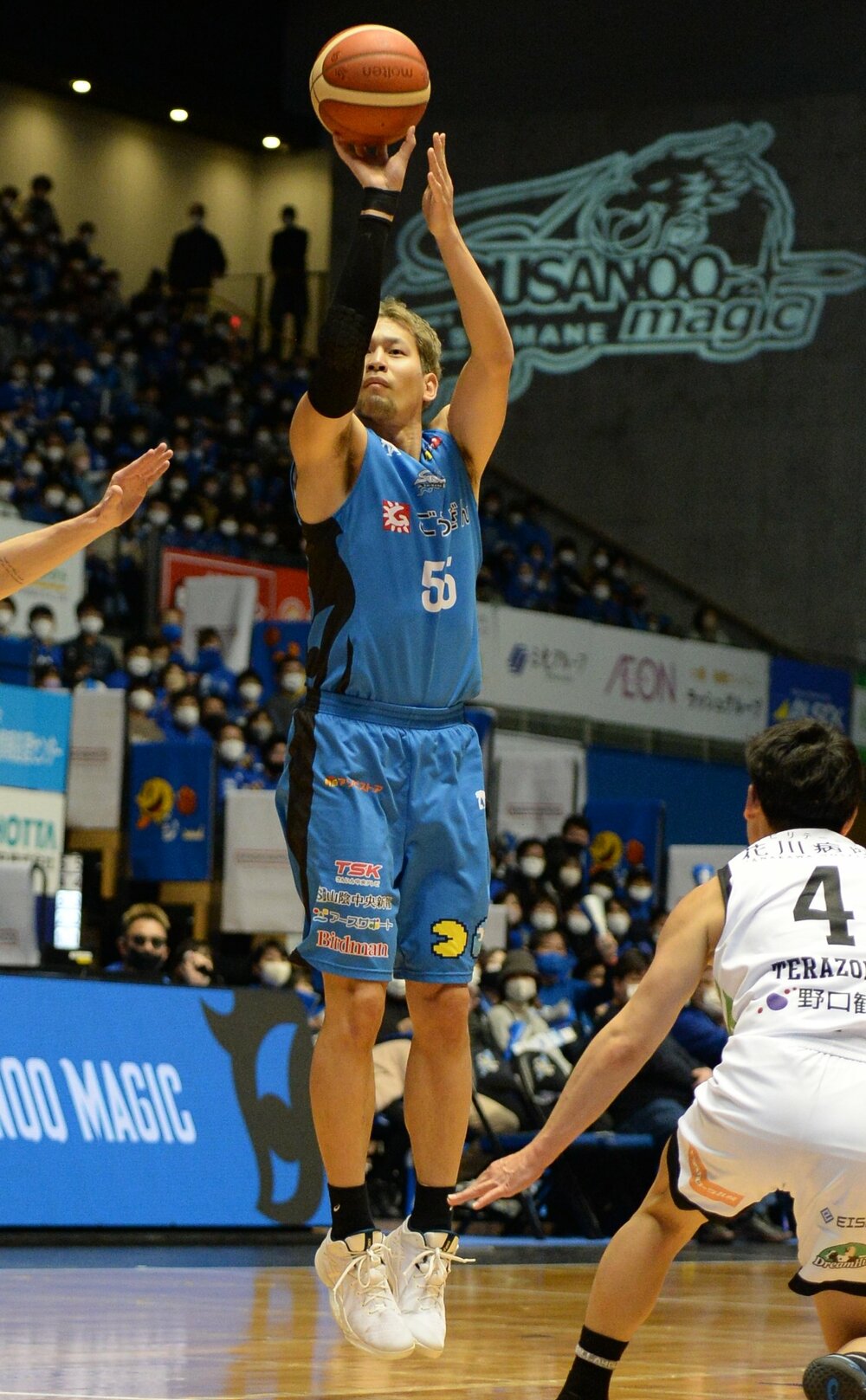 バスケットボール男子Bリーグ1部(B1)西地区の島根スサノオマジックが5日、ホームの松江市総合体育館で第36戦を行い、レバンガ北海道(東地区)に97ー78で勝利した。6連勝とし、通算29勝7敗。前半にペリン・ビュフォード、リード・トラビスを中心に42得点を挙げて主導権を握ると、後半は55得点し、一度もリードを許さなかった。ビュフォード、トラビス、安藤誓哉、ニック・ケイ、谷口大智、ウィリアムス・ニカの6選手が2桁得点をマークした。試合の様子を写真で振り返る。試合結果はこちら。