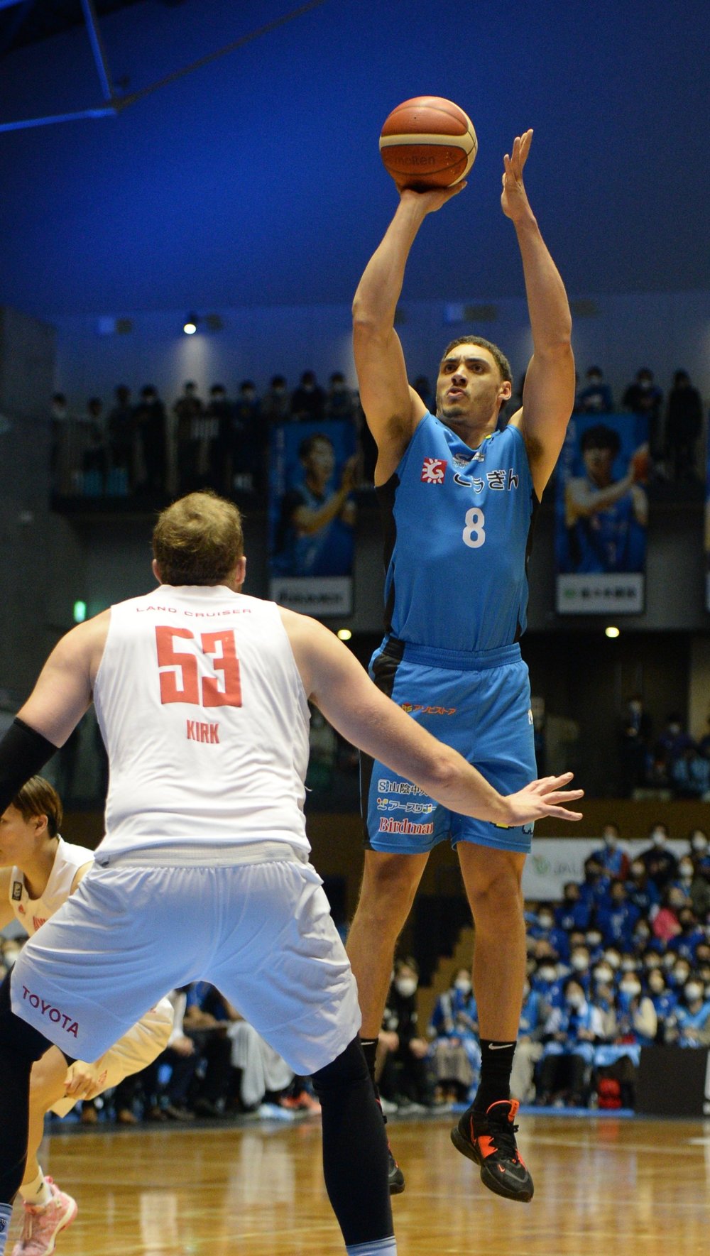 バスケットボール男子Bリーグ1部(B1)西地区の島根スサノオマジックが11日、ホームの松江市総合体育館で第37戦を行い、アルバルク東京(東地区)を77ー67で下した。連勝を7に伸ばし、通算30勝7敗。6点リードで第3クオーターに詰め寄られたが、第4クオーターに要所でペリン・ビュフォードらが得点して振り切った。ビュフォード、リード・トラビス、安藤誓哉が2桁得点を挙げた。試合の様子を写真で振り返る。試合結果はこちら。