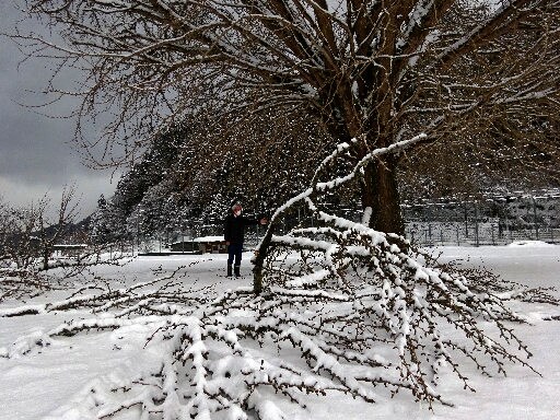 大ぶりの枝が折れたのは昨年12月下旬の大雪。幹の周りに散乱しているのを地元住民が見つけた。同法人によると、枝折れの被害は珍しくないが、大きな枝が被害に遭うケースはなかったという。