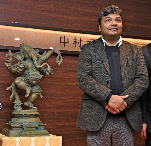 像(高さ76センチ、重さ約70キロ)はブロンズ製で舞踏の様子を表現。ガネーシャ神は子どもの進学時に学業成就で祈願されるなど、インドで広く親しまれているという。