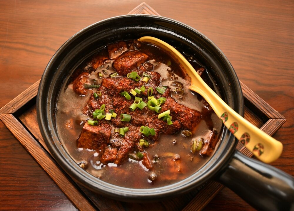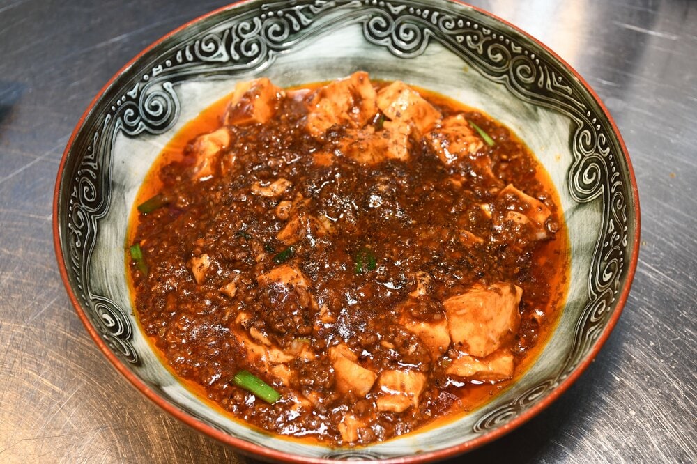 マーボー豆腐はトウバンジャンやテンメンジャン、コチジャンなど計12種の調味料を配合し、味に深みを出している。中でもトウバンジャンは風味が違う3種を使用する。うち2種は熟成したトウバンジャンで、こくのある味わいが味噌(みそ)に似ているという。食べてみると確かに、辛いだけではなく味噌のようなこくや香り、甘さを感じた。辛さを堪能したい人は、しびれる辛さの「四川麻婆豆腐」(1380円)もお薦め。