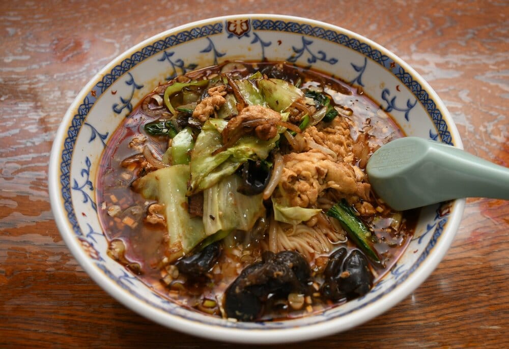 酸味と辛みがきいたサンラータン麺は炒り卵が入っていて、まろやかさも感じる。一口大に切ったキャベツは甘くておいしい。辛すぎず、くせになる味わいだ。