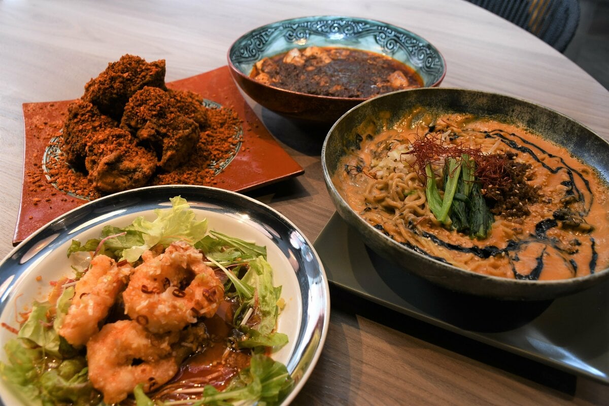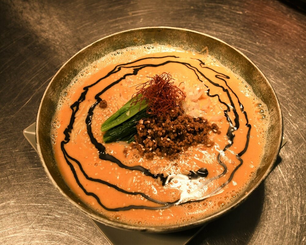 人気メニューは「胡麻(ごま)担々麺」(950円)や「五智特製麻婆豆腐」(1280円)、 「五智特製エビのチリソース」(1250円)。担々麺はゴマペーストをふんだんに使い、トッピングにも黒ゴマペーストをかける。ゴマの濃厚な香りやまろやかさの中にピリッとした辛みを感じる、絶妙なバランスの一品だ。