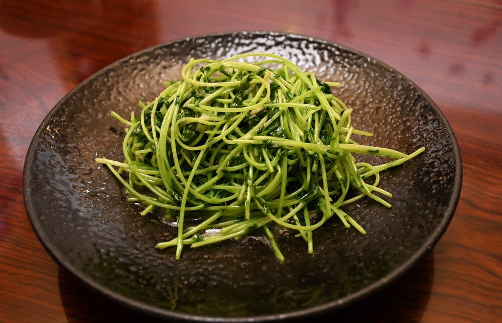 豆苗をニンニクと炒め、塩で味付けした「豆苗の塩炒め」は、1人で5人前を注文するほどの大ファンもいるという。豆苗はシャキッとした新鮮な食感で、シンプルな味付けにニンニクの良い香りが効き、食欲をそそる。細切りのジャガイモを同じように塩で炒めた「じゃがいも細切りの塩味炒め」(680円)はあっさりとした味わいで、女性を中心に人気がある。
