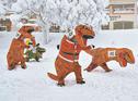 鳥取市から参加した鳥取環境大1年の高村ゆず子さん(18)は「城跡を登る恐竜の姿はシュールで面白かった」と喜んだ。