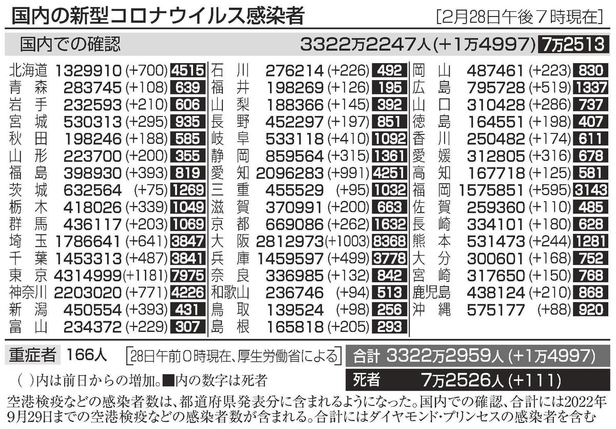 島根県分で、診断した医療機関の所在地別内訳は出雲市68人、松江市51人、雲南市33人、隠岐の島町13人、浜田市8人、大田市、奥出雲町各5人、津和野町4人、益田市、安来市各3人、吉賀町2人、飯南町1人。ほかに9人が医療機関で診察を受けず自主検査のみで「しまね陽性者登録センター」に登録した。
