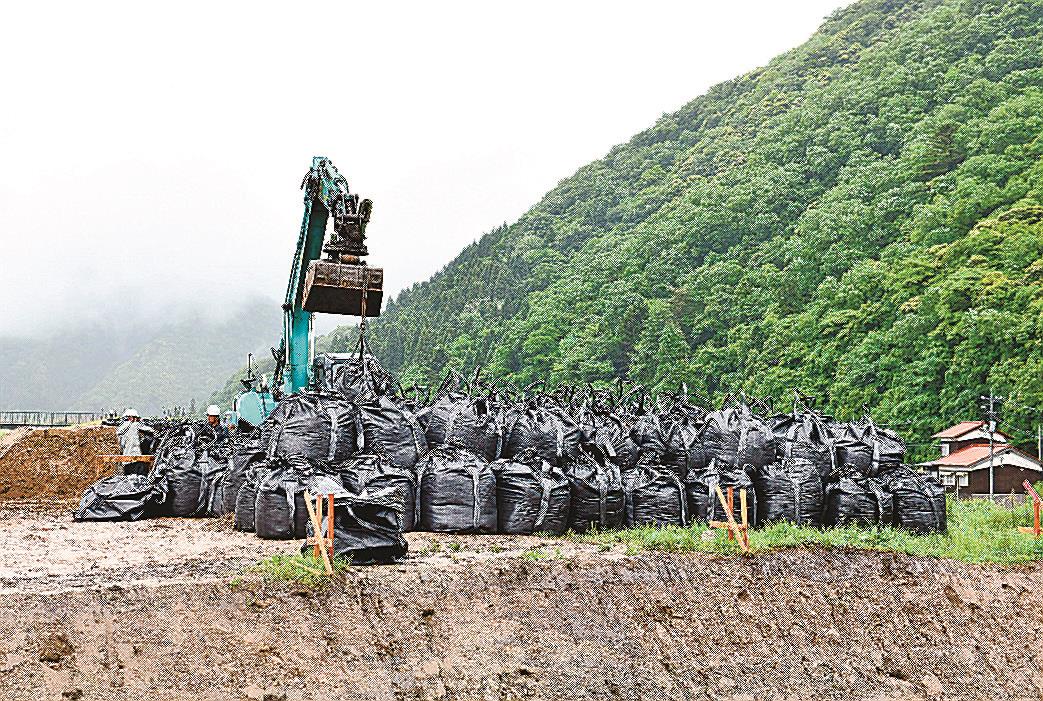 本流の増水で支流の水がせき止められ、あふれる「バックウオーター現象」が起きた同市桜江町川越地区では堤防建設に向け、用地買収が進む。梅雨入りを受け、国土交通省浜田河川国道事務所が、水の流入を防ぐ1メートル四方の大型土のうの準備を急いだ。